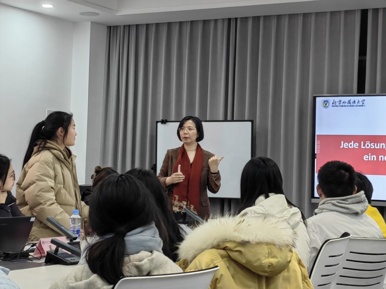 最后,吴江教授对大家提出了学科研究建议。她建议将区域研究纳入国别研究范畴中,以拓宽研究视野;将社科研究和人文研究兼容,以丰富研究方法;将教学内容和学术研究结合,以端正研究态度。此外,她还特别鼓励学生们要对德语专业有信心,努力提升自己的语言水平和专业素养。