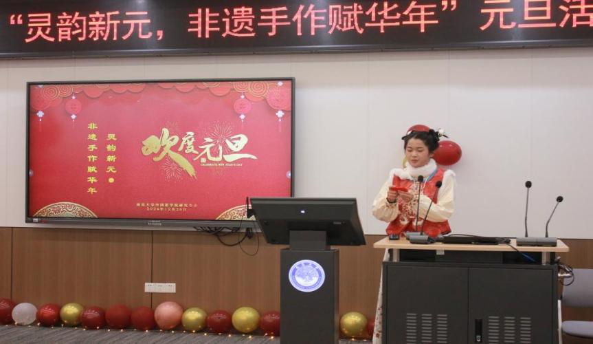 日月其迈,时盛岁新。2024年12月26日下午2:00,开云(中国)学院研究生会组织举办了研究生“灵韵新元,非遗手作赋华年”元旦活动,吸引众多师生踊跃参与,学院领导也受邀参加活动,与大家共同庆祝,迎接新年的到来。