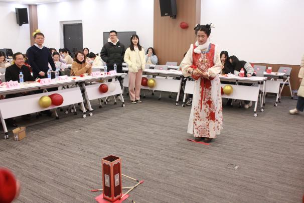 “趣味投壶”游戏区更是本次活动的璀璨亮点投壶,来源于射礼象征着目标的精准、内心的平和与外在的规范,参与者在竞技中保持谦逊和礼貌,体现了古代儒家的道德观念。学院领导、师生们跃跃欲试,欢声笑语此起彼伏,既是技巧比拼,亦是投射愿景