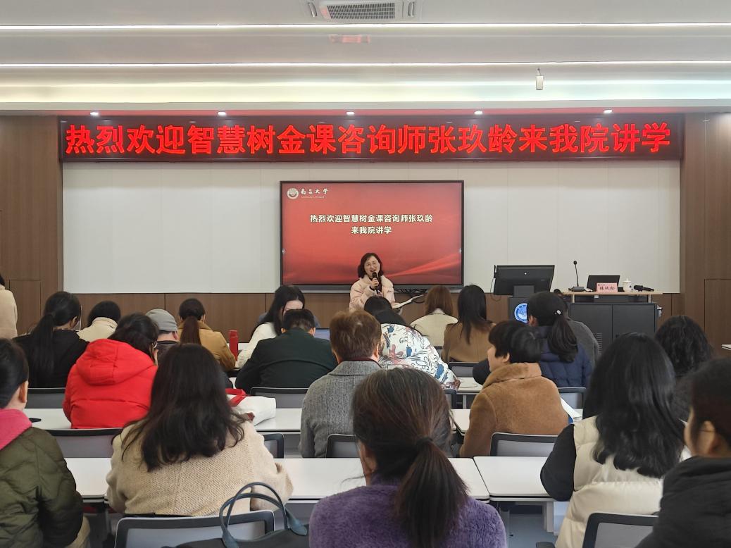 20252月27下午14:00,应外国语学院邀请,智慧树金牌咨询师张玖龄在外经楼402会议室作了题为《关于课程建设与智慧教育》的讲座,讲座由姚琴院长主持,吸引了众多学院教师前来聆听。