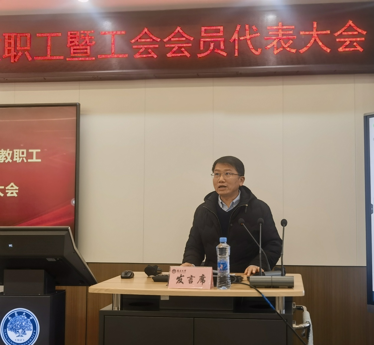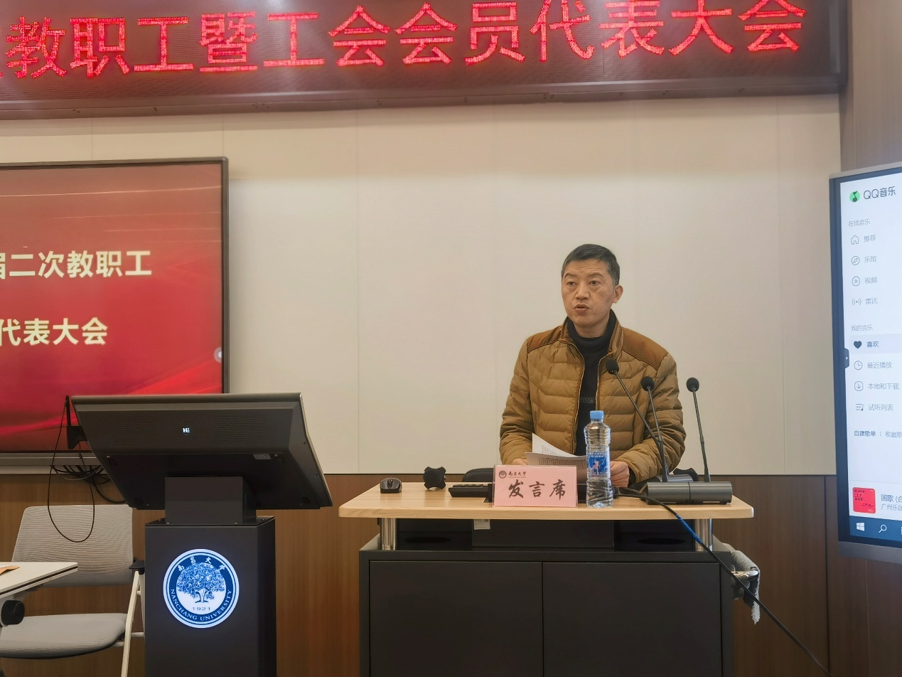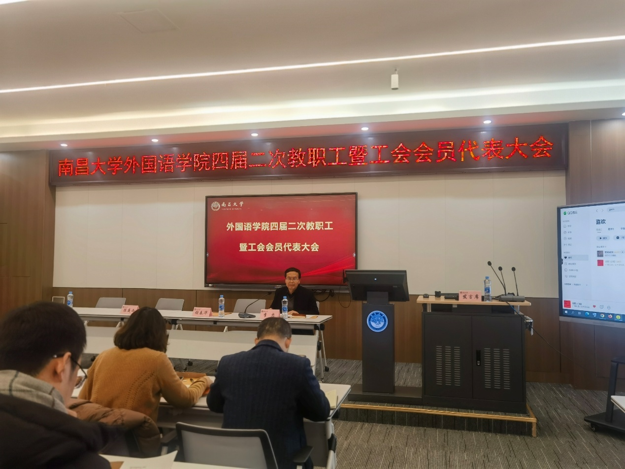 学院分工会主席刘炎祁代表院工会作主题为“齐心协力,奋发有为,谱写外国语学院工会工作新篇章”的《外国语学院工会工作报告》。报告从坚定正确政治方向、坚持民主制度建设、推进“职工小家”建设、增强教职工凝聚力和向心力、凝聚“双一流”建设力量等方面,回顾了2024年学院分工会工作,并表示2025年学院分工会将更加细致完成各项工作,更好地为教职工说知心话、办贴心事,以更有效地发挥工会组织在推动学院发展中的桥梁纽带作用。