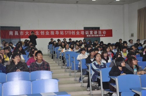 20101126,由外国语学院和南昌市大学生创业指导站联合举办的SYBSTART YOUR BUSINESS)创业培训宣讲活动在外经楼103教室顺利举行。我院300余名大三、大四的学生参加了活动。